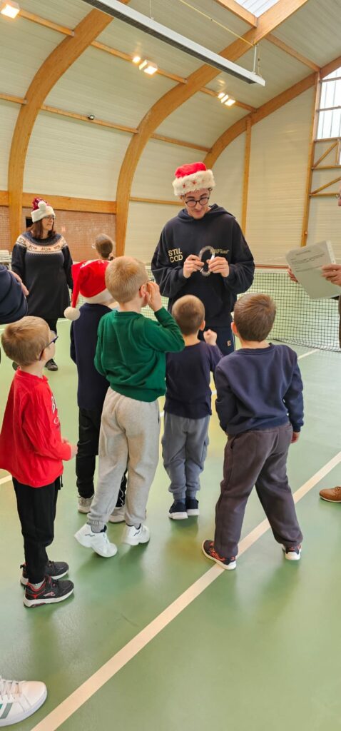 Par chance, les enfants ont retrouvé les morceaux après des petites épreuves amusantes et le Père Noël a pu remporter son match et distribuer ses cadeaux.